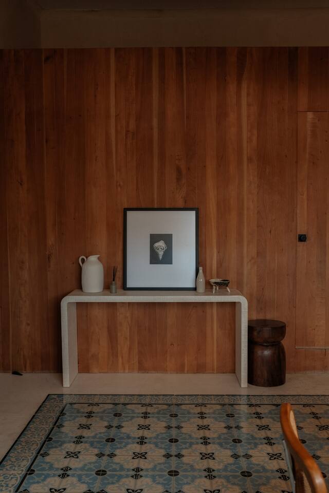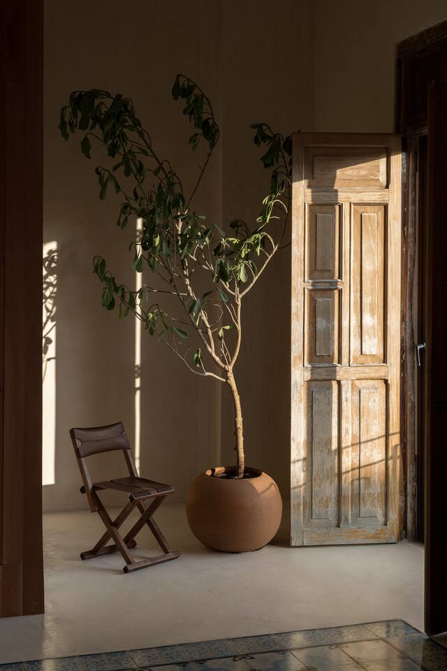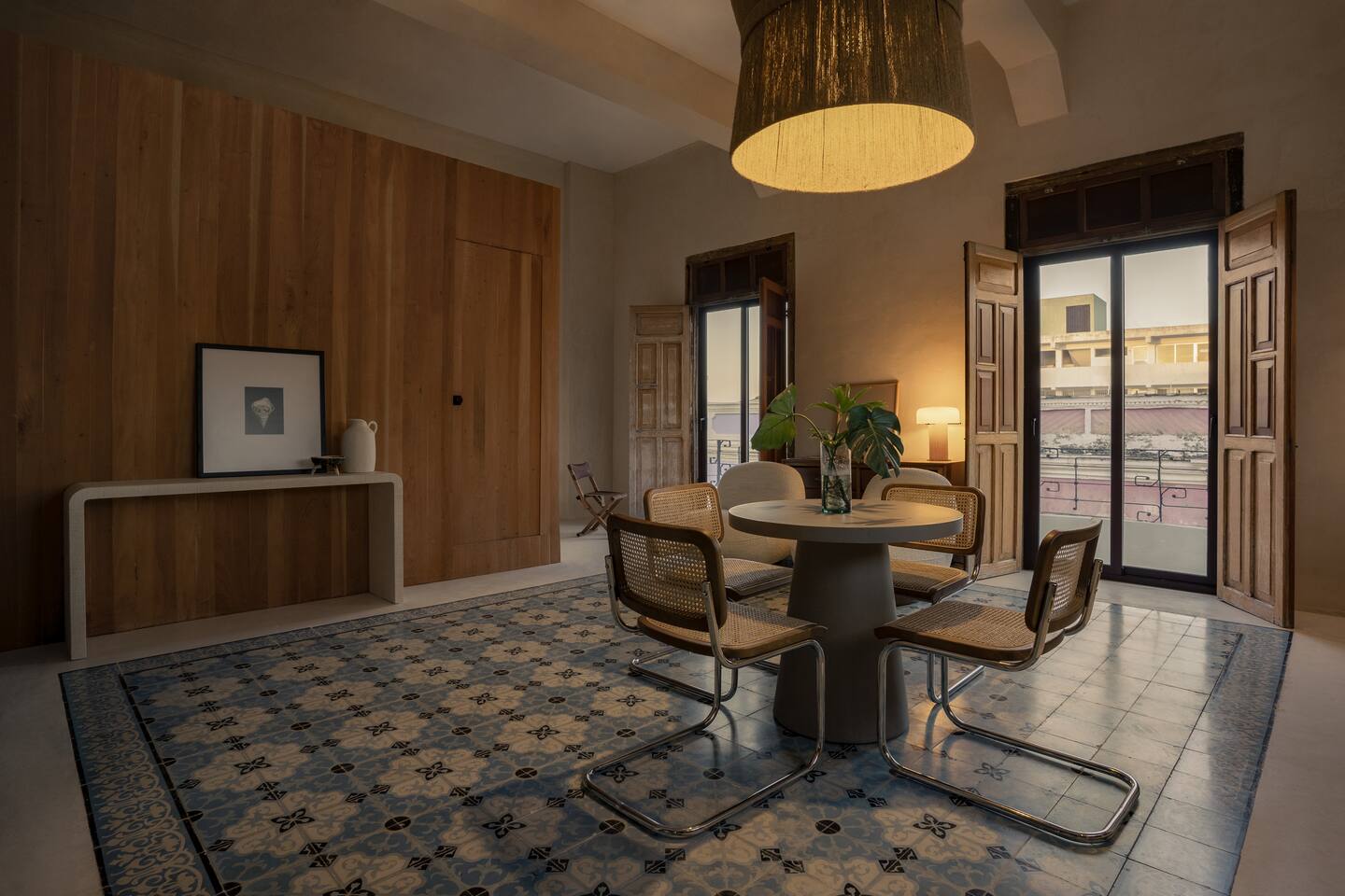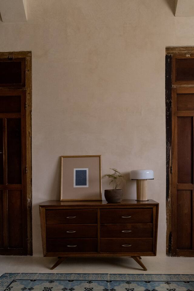 Casa Numen with its colonial appearance accompanies a mid-century interior design. High ceilings, "boiserie" walls, "chukum" cover, ceramic tiles, and a balcony that fills with light, are the key elements inside this loft. A selection of contemporary furnishings and one-of-a-kind pieces bring the space to life, all under a warm, earthy color palette. A few steps from there, we will find walls that tell our history, warm people and a peaceful sea that flirts with us every sunset.
