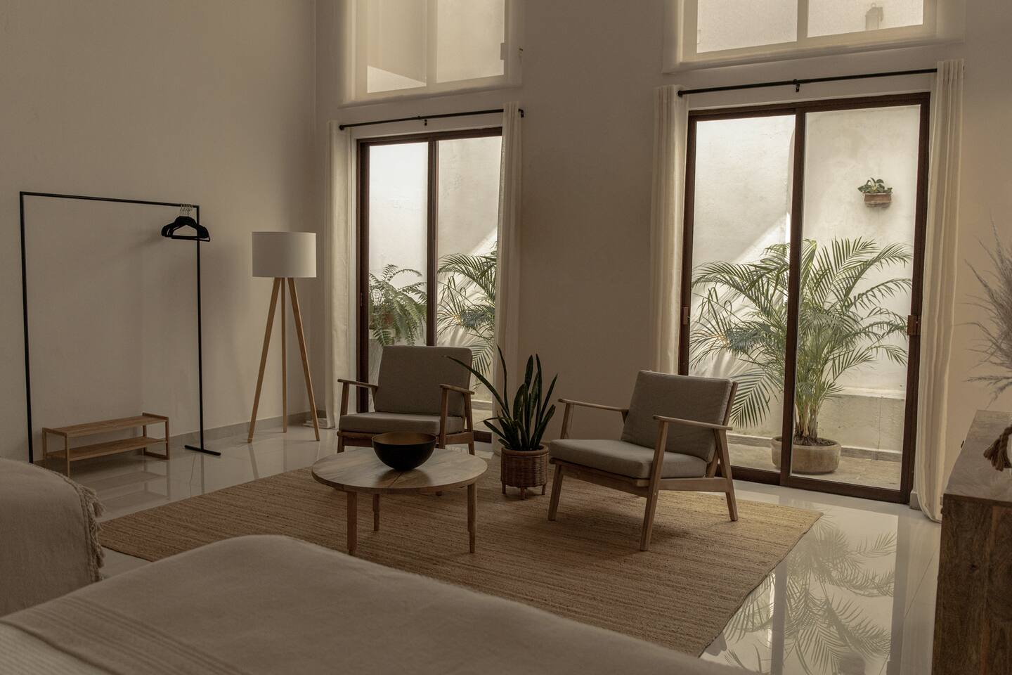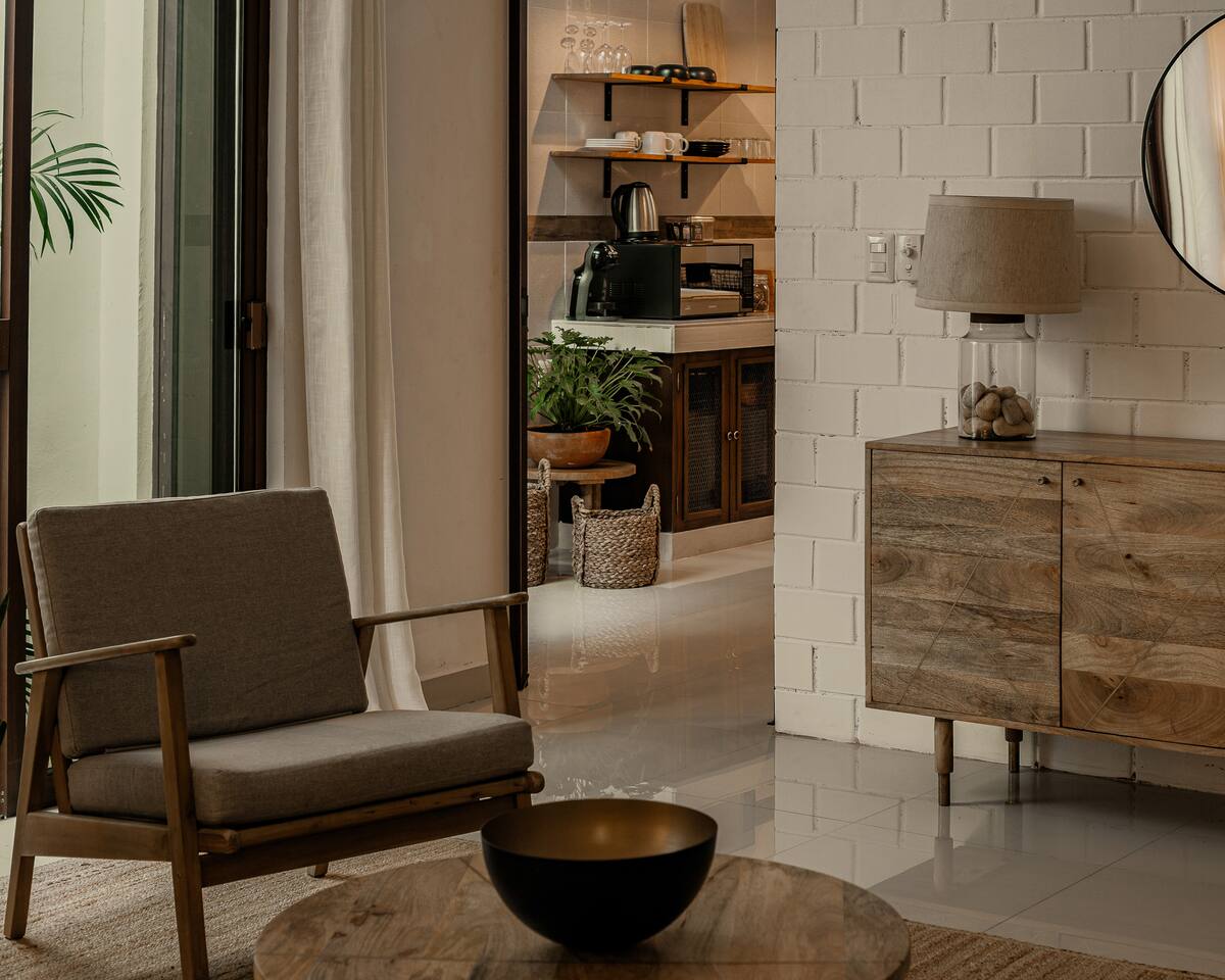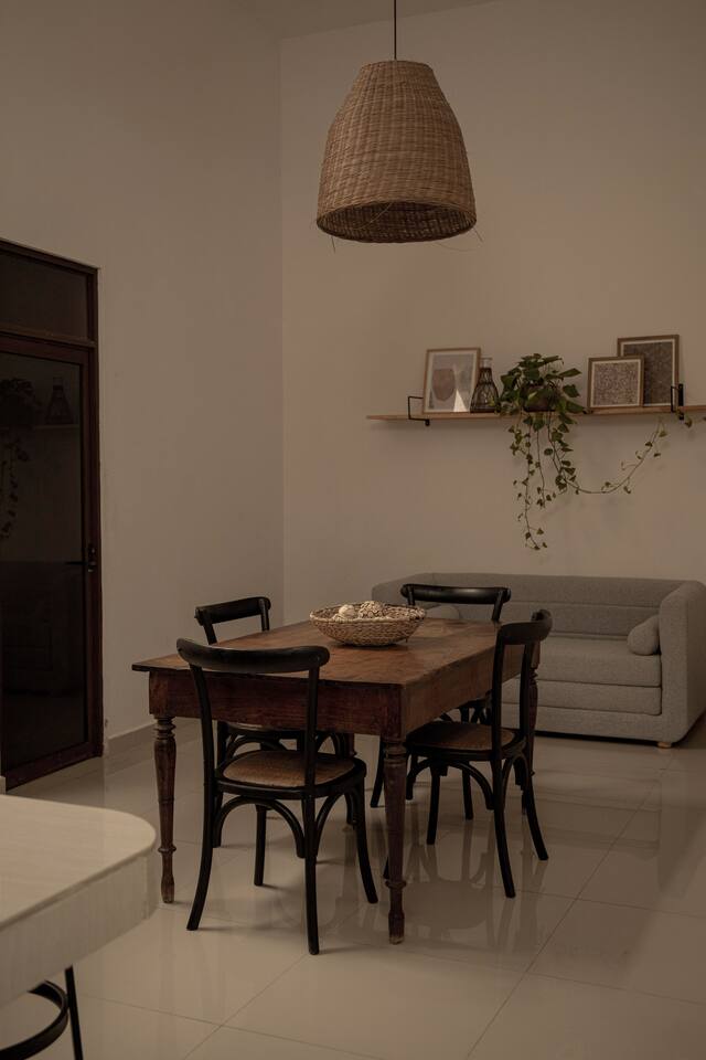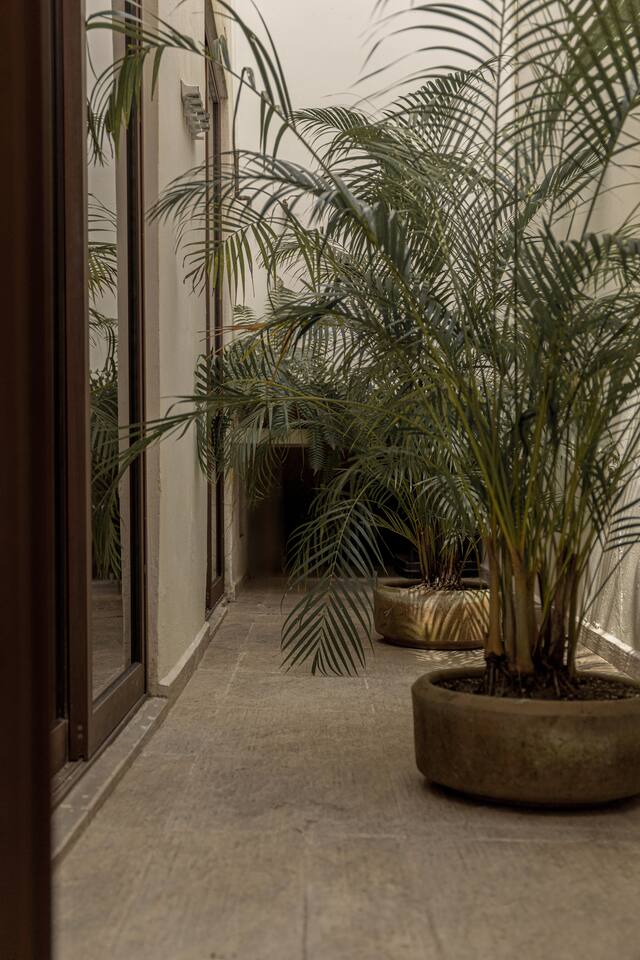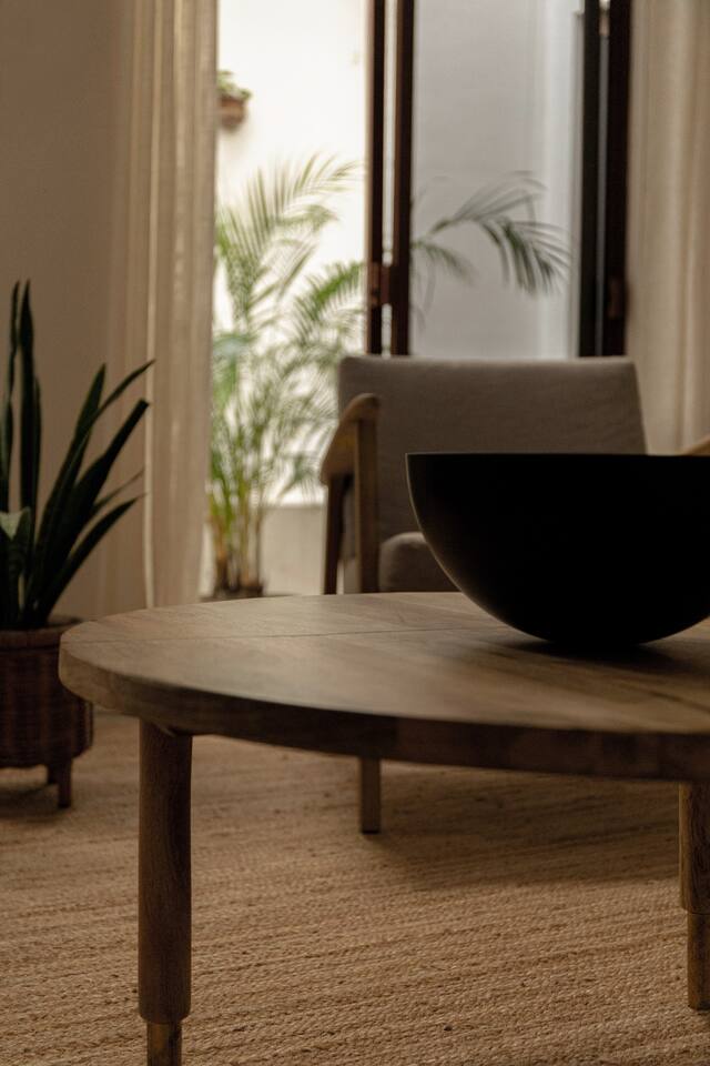 Casa Serena, located in the heart of the city, is a spacious and warm space, with sober tones that provide a visual rest. Mango wood, macrame, natural fibers and original pieces are the perfect mix for a pleasant stay. Two inner courtyards display its green splendor, with palms and magnificent "tiger claws". Walking in the surroundings you can enjoy an afternoon full of color, the evening breeze and magnificent sunsets.
